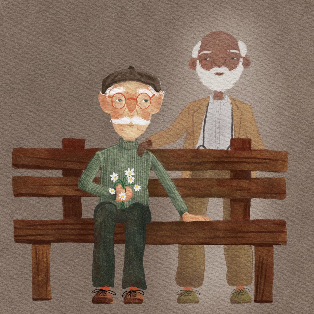 J’ai repris Charles, assis sur son banc, les mains pleines de souvenirs.