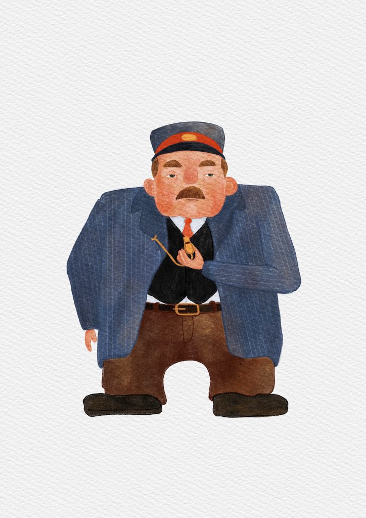 Un chef de gare, les épaules un peu lourdes, le regard perdu.